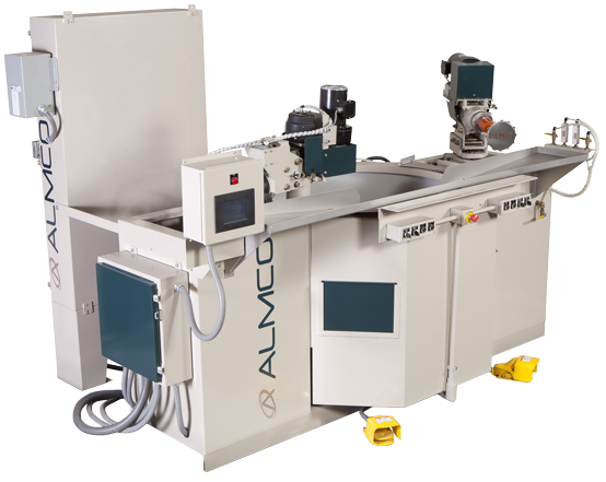 Almco是美國一家70多年歷史的機械零件表面處理公司,有著深厚的技術積累。服務領域集去毛刺,打磨,清洗,光飾于一體。適用產品從小尺寸機械零部件到最大的飛機發(fā)動機零部件。客戶主要集中在波音,普惠等一流飛機零部件生產企業(yè)。本次以其最具代表性的旋轉軸精密去毛刺設備(Spindle Finishing Machine)為例介紹如下該機型主要用于高精度產品的去毛刺,適合大型不見貨多種小型零件的組合件,磨料磨削液已高達1000ft/min的限速的旋轉移動,旋轉所產生的離心力帶動介質轉動從而形成一個“砂輪”,零件緩慢旋轉確保能對所有表面進行修邊和去毛刺。此設備用于齒輪,曲軸,軸承套,花鍵軸,泵轉子,噴氣發(fā)動機葉片等