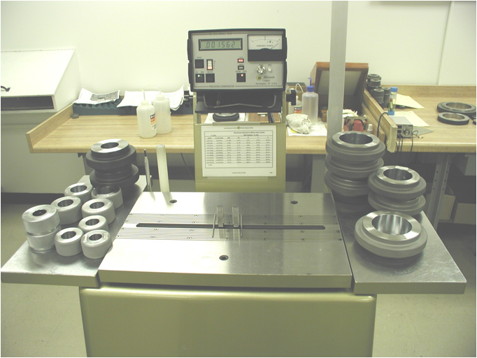 這是一臺在全球很多校準實驗室采用的標定環(huán)規(guī)的計量設(shè)備??梢杂糜跈z定ASME X,XX,XXX級精度的環(huán)規(guī),相當于可以檢定國內(nèi)二等環(huán)規(guī)。 通過一整套完善的量值傳遞機構(gòu)可以快速精確的找到環(huán)規(guī)的直徑拐點,這其中其最大作用的是兩只消除了摩擦力影響的位移傳感器。這是一臺可以測量百萬分之一級內(nèi)外尺寸的儀器,同時可以用來測量一些高精度的盤類零件。